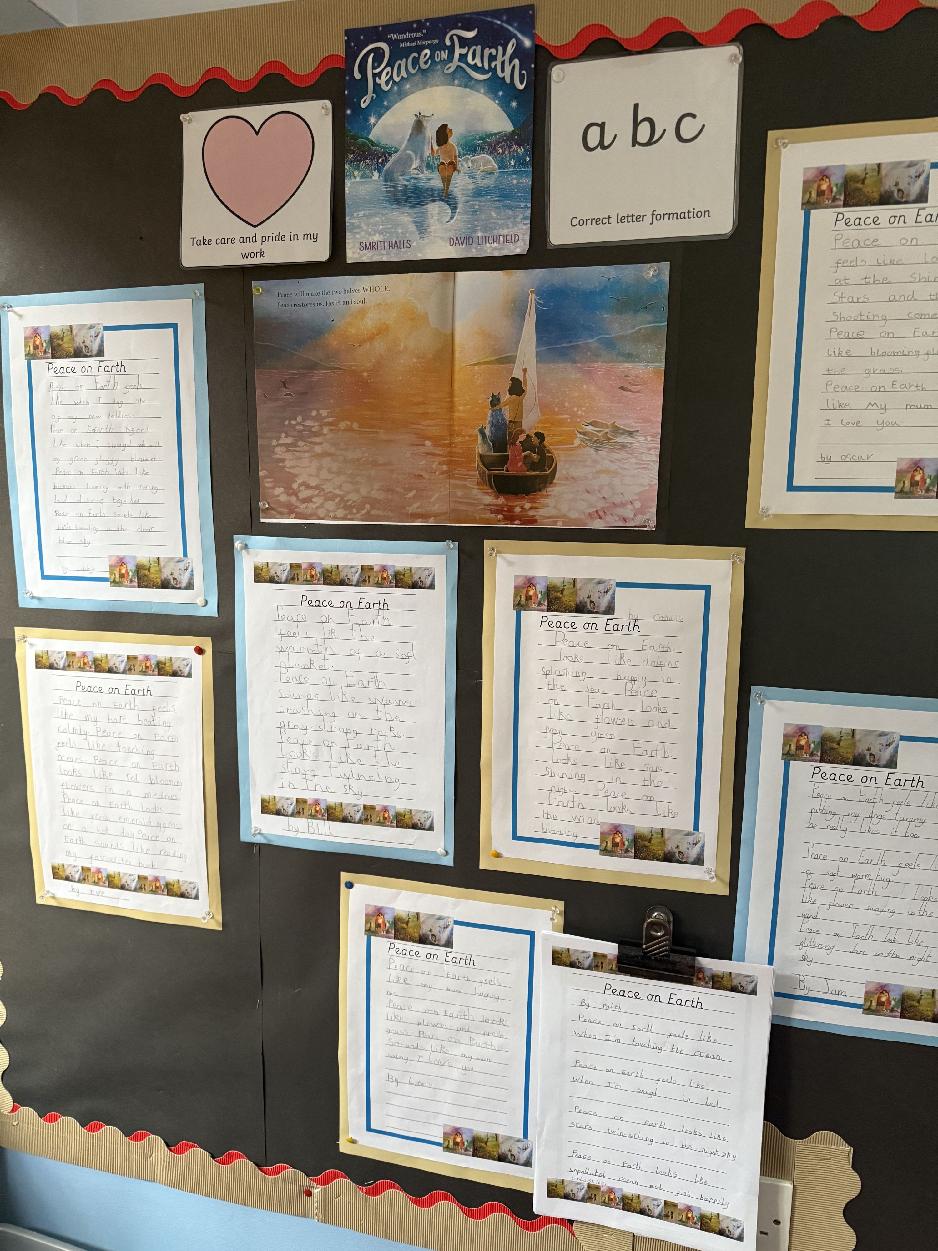 As a school, we have explored the book 'Peace on Earth' by David Litchefield. This is a beautiful picture book with stunning images that lights a path for all those who dare to dream of peace.